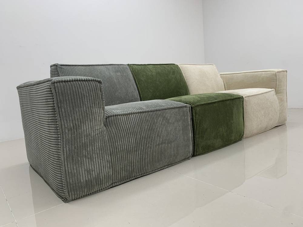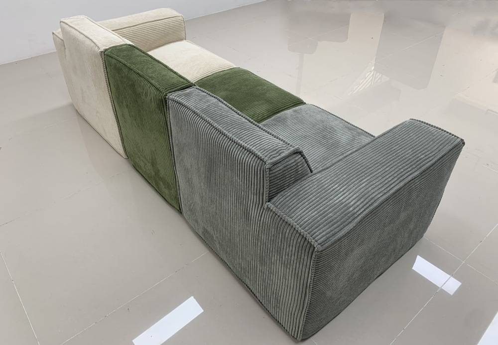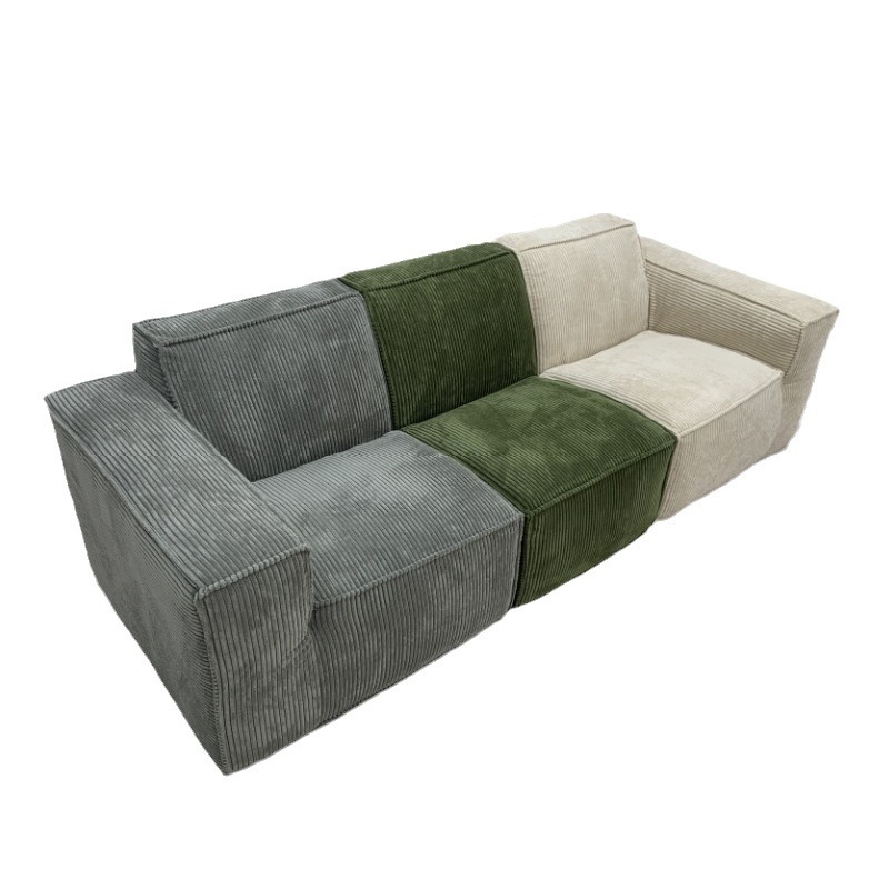 This modern sectional living room sofa set features a modular design, customizable colors, and luxurious velvet fabric, offering both style and comfort. Its compression packaging ensures safe delivery and easy handling.