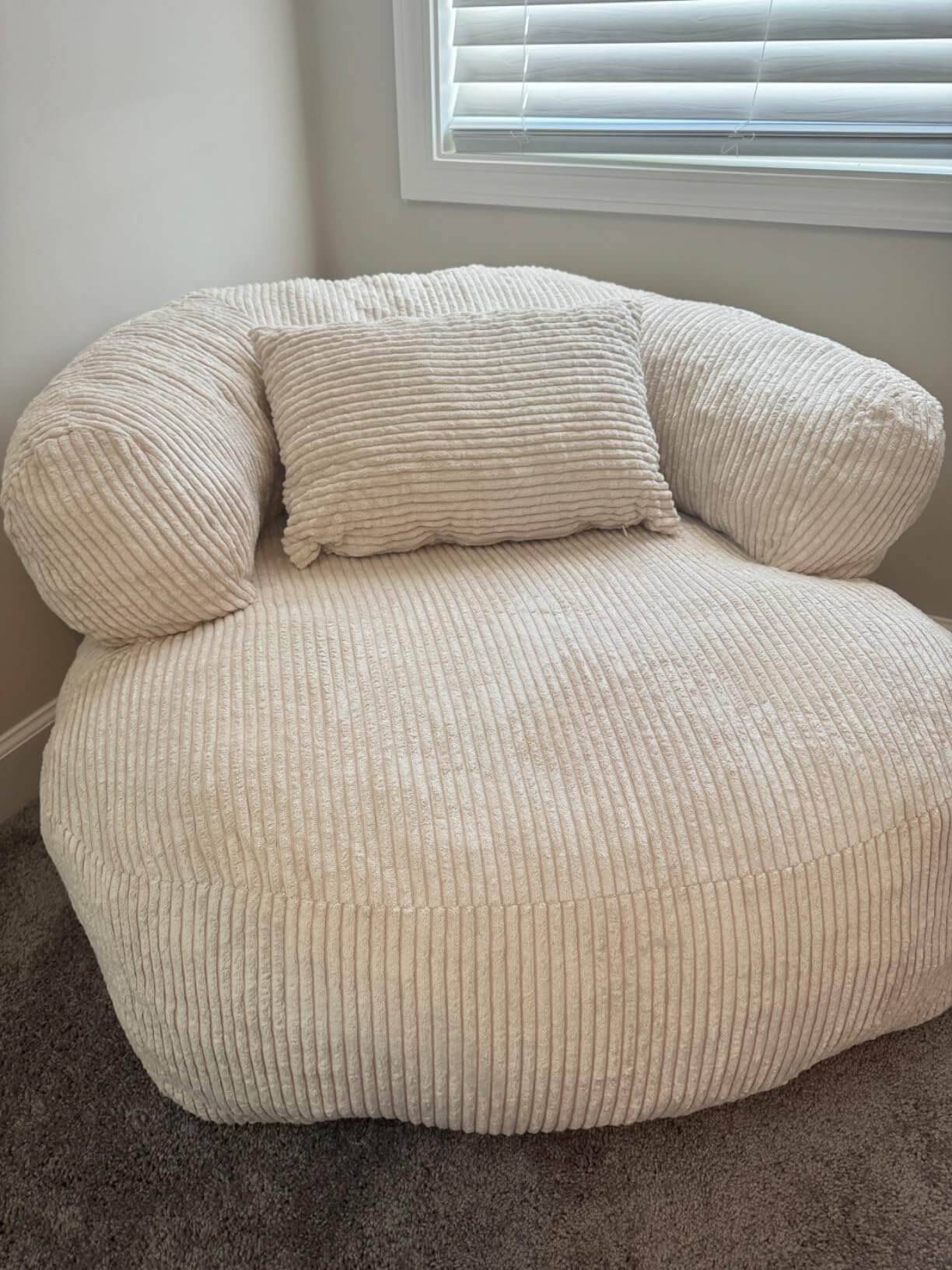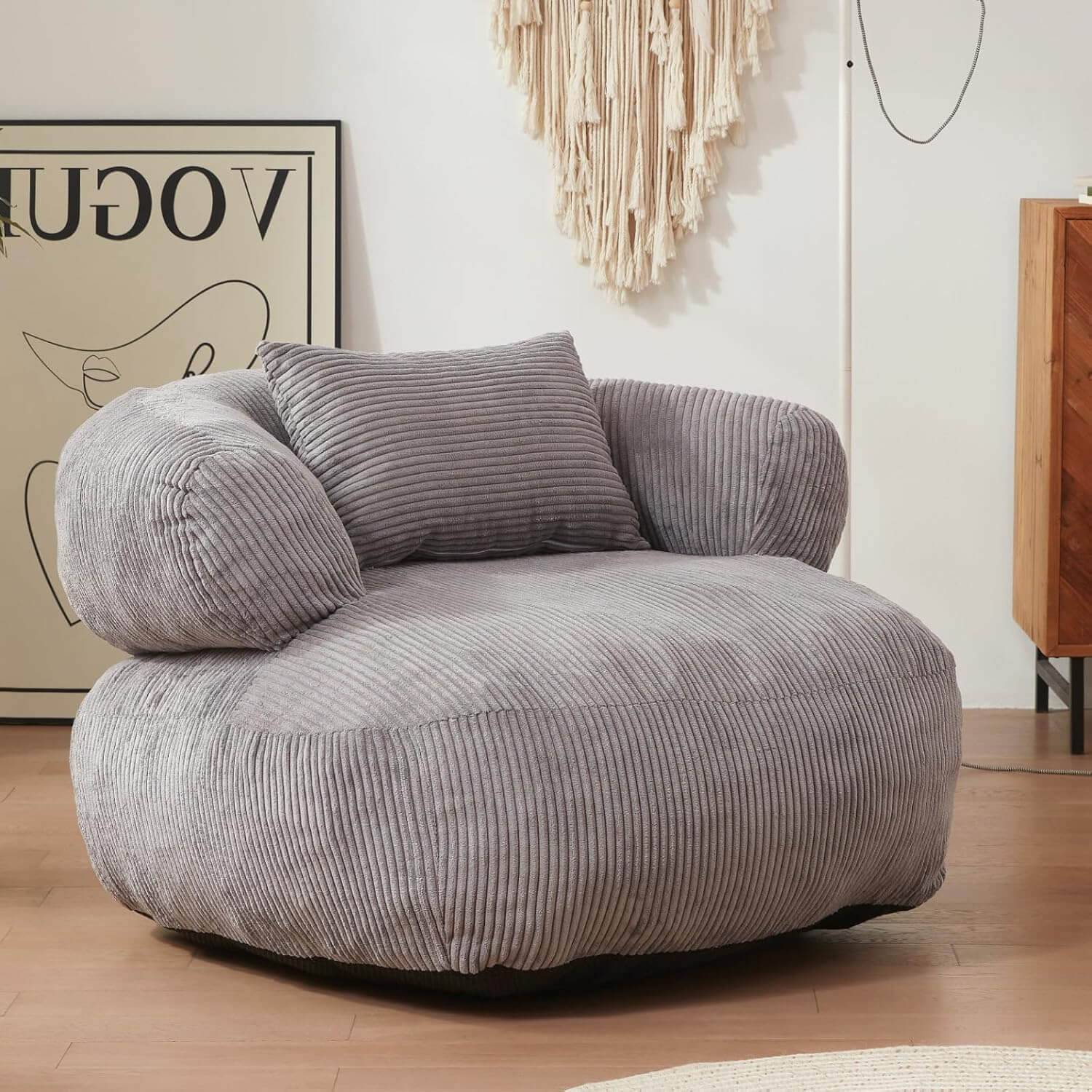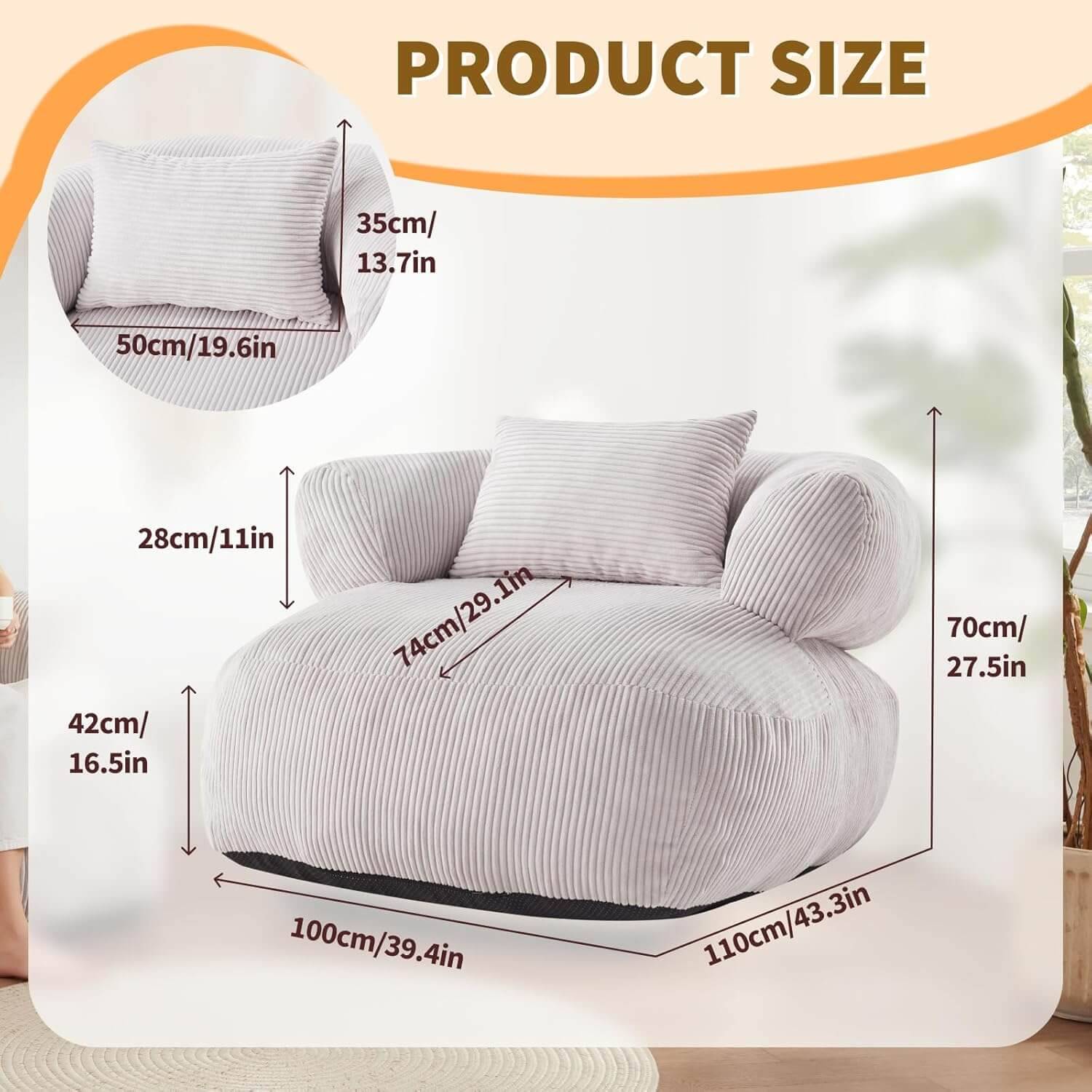 【ERGONOMIC DESIGN】: The comfy cozy bean bag chair with lumbar pillow, ergonomic design make sitting or lying more supportive. Adult bean bag chair sofa measures 43.3" x 39.4" x 27.5", and oversized cushion is spacious enough to fit any body type.