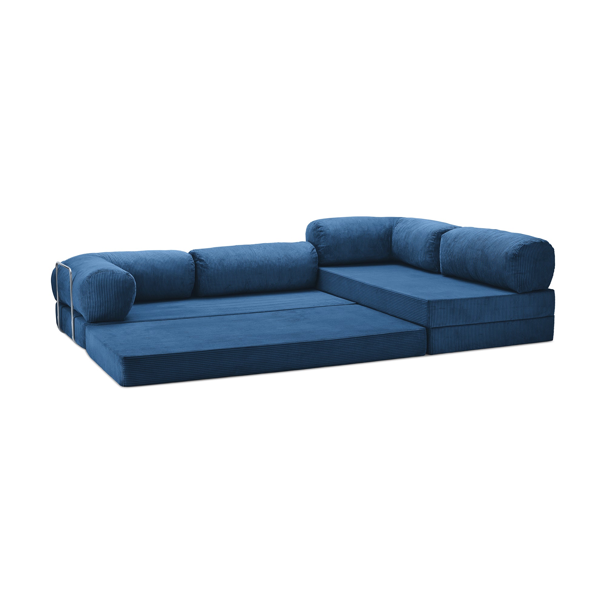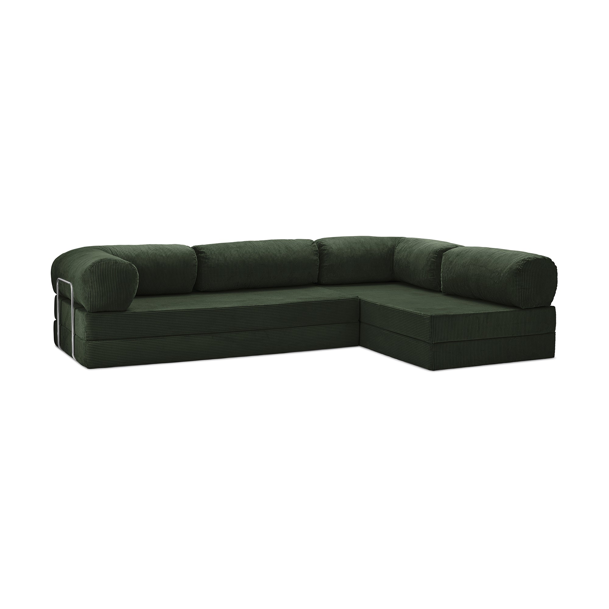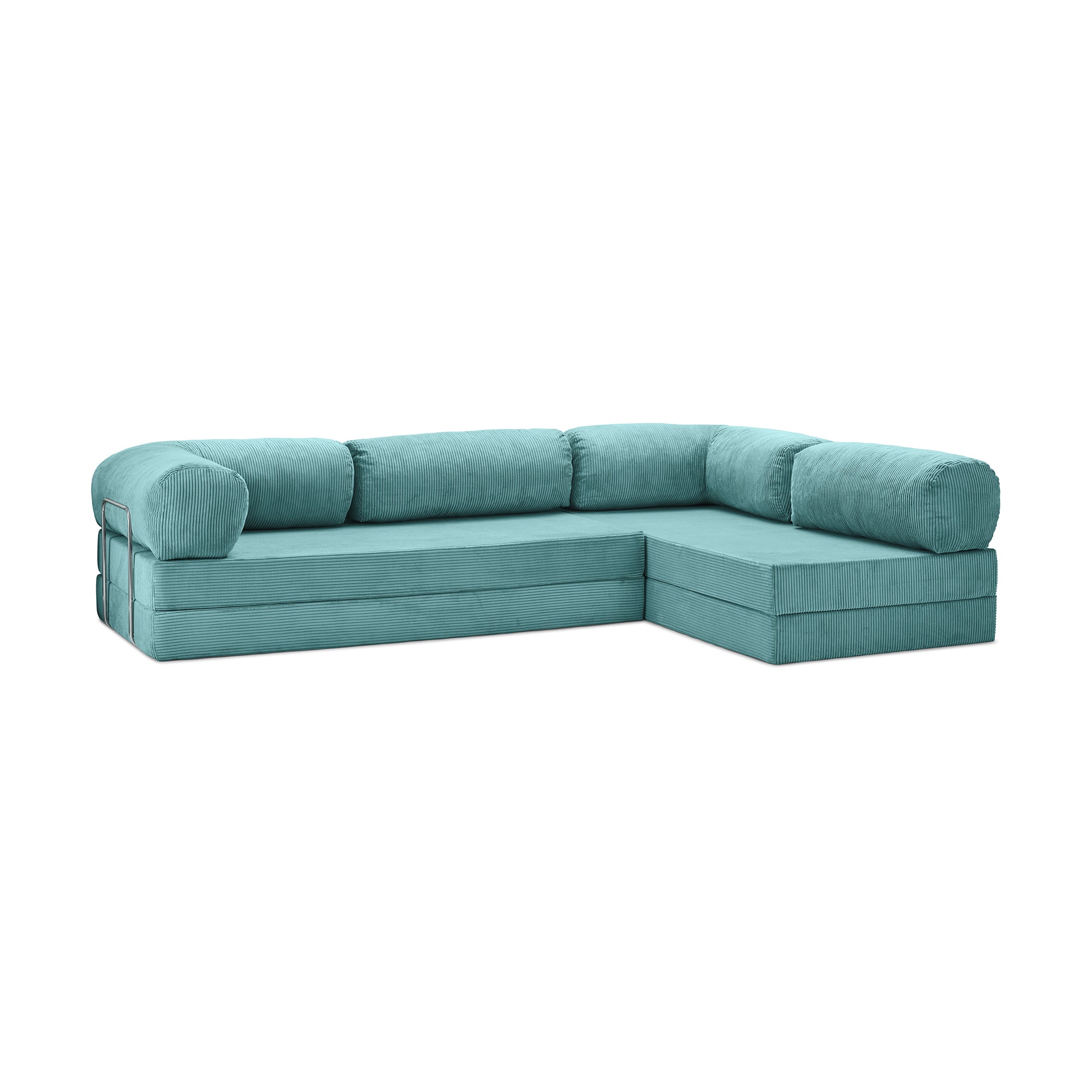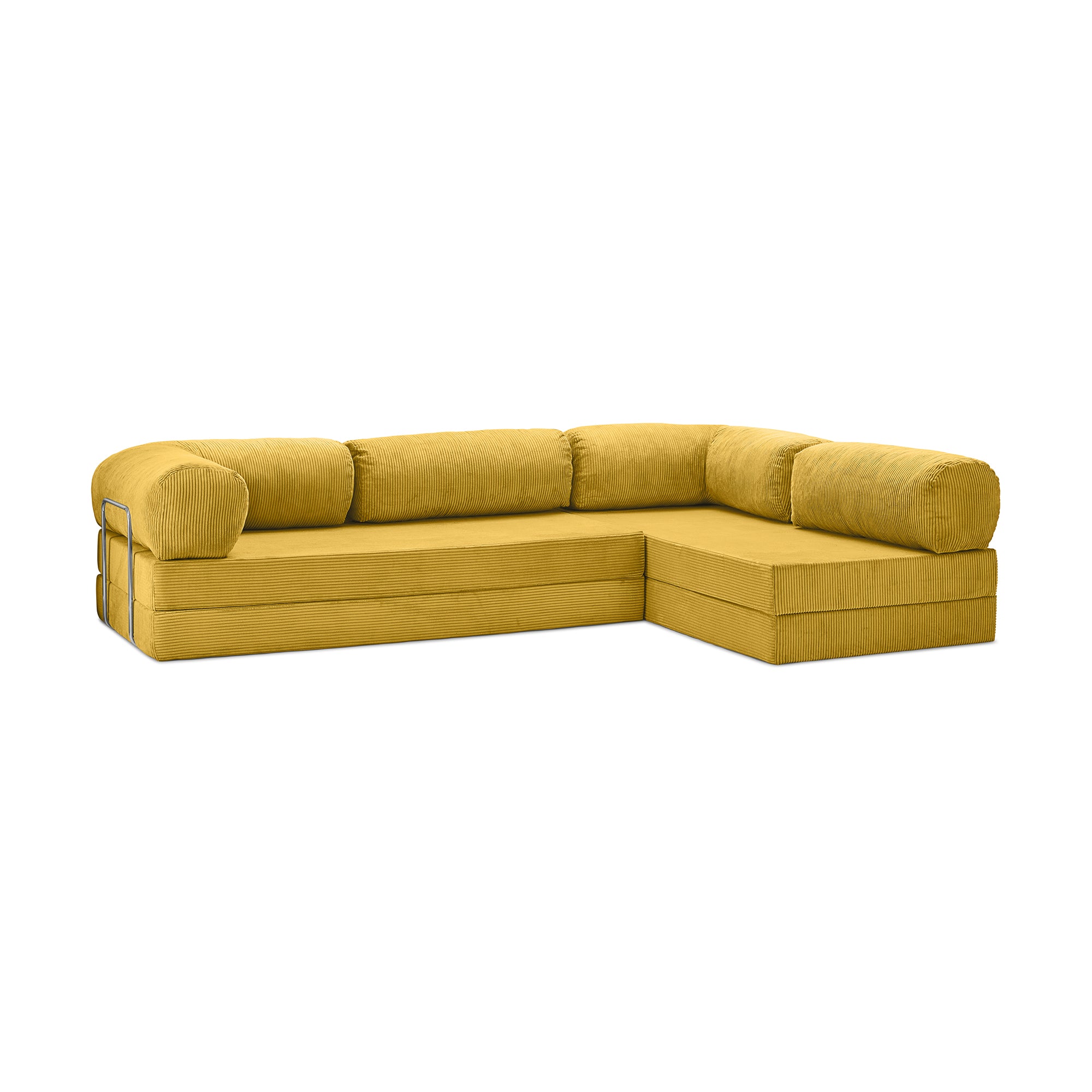 CORNER OPEN is not just any corner sofa – it's a seamless fusion of two sofas, joined together with a simple yet secure Velcro connection. Unfold CORNER OPEN to unveil a vast mattress floor, perfect for playful moments with the kids or relaxed gatherings with friends and family. This expansive area also functions as a huge bed when you need extra sleeping space.